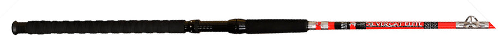 B&M SILVER CAT ELITE SPINNING 7ft 6in 1pc E-GLASS. The all new 7.5ft/1 piece Silver Cat Elite is made of E-glass composite material, which provides extreme strength and durability while catching huge cats. Designed for suspended drifting and anchoring, this rod has a non-parabolic action that provides a stiff backbone, but with a faster tip to see bites more clearly. The action of this rod is unique and will provide excellent visibility. Other prominent features of this rod are a double-nut locking reel seat made of aircraft grade aluminum, Hi-vis tip - especially useful for night fishing, and a high quality X-Grip handle that provides extra grip and improves rod aesthetics.